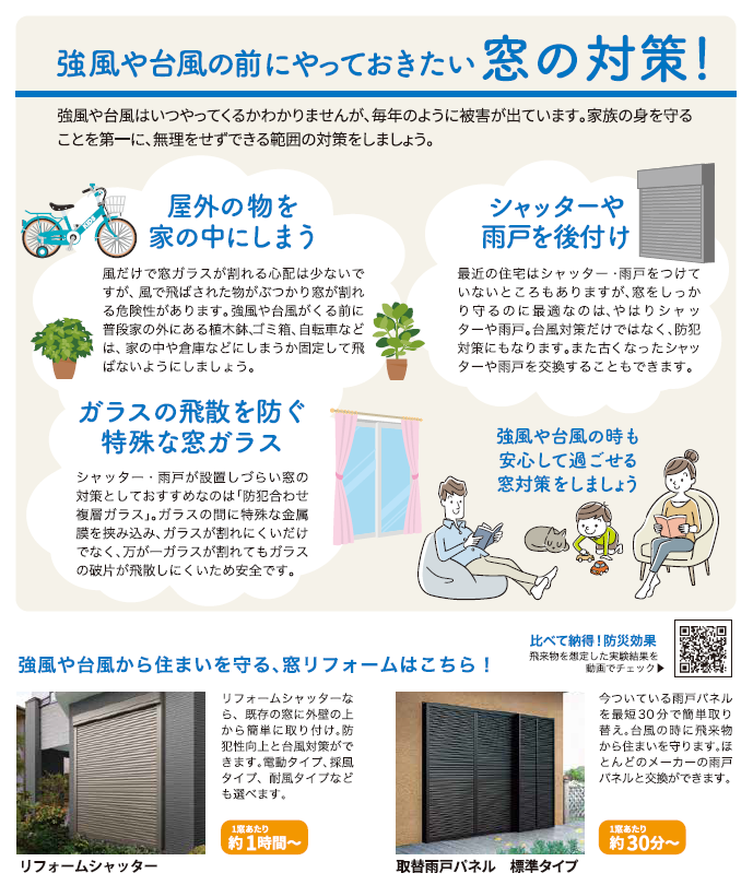 私も2年前の台風9号、10号が続けて発生した時には恐ろしくて、その後リフォームシャッターを取付けました。